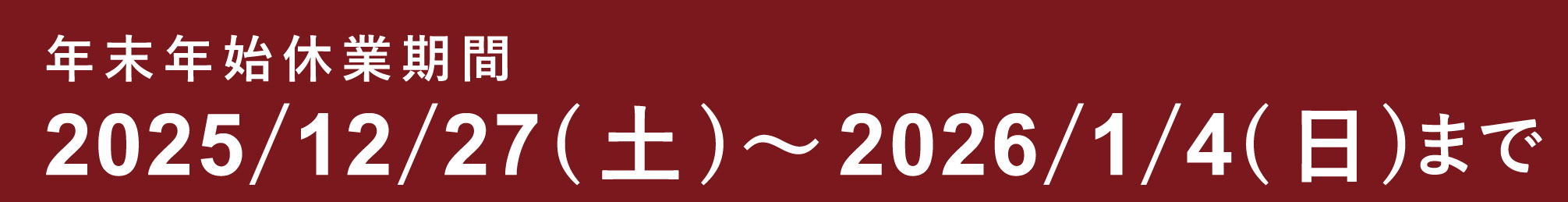 年末年始休業前発送分の最終ご注文受付日時:12/26(金) 08:00まで