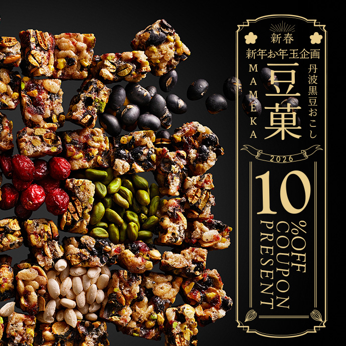 香ばしく煎り上げた丹波黒大豆に、やさしい甘さをまとわせた豆菓は、