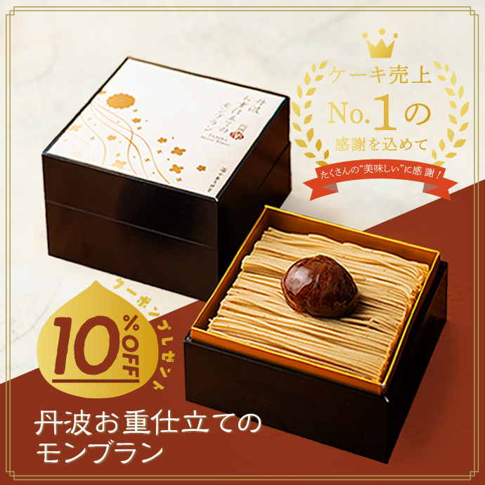 お知らせキャンペーンこの度、「丹波お重仕立てのモンブラン」が「2025年 冷凍ケーキ売上ランキング」にて1位を獲得いたしました。